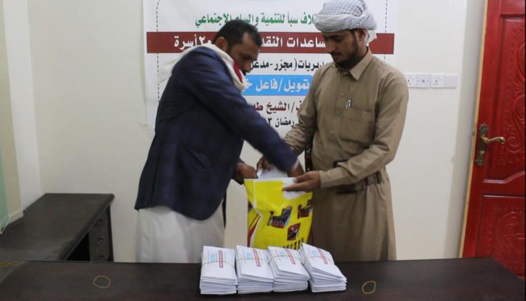 وكالة الناس – نفذت مؤسسة ائتلاف سبا للتنمية والسلم الاجتماعي  SFDP – محافظة مأرب مشروع توزيع المعونات النقدية الرمضانية المقدمة من فاعل خير بتنسيق وإشراف الشيخ طه علوى الباشه زبع للعام 1443 هجرية و لعدد 200 اسرة بواقع 1400 نسمه وذلك للأسر المحتاجة و النازحة والفقيرة في محافظة مارب مديريات مجزر ومدغل ورغوان.