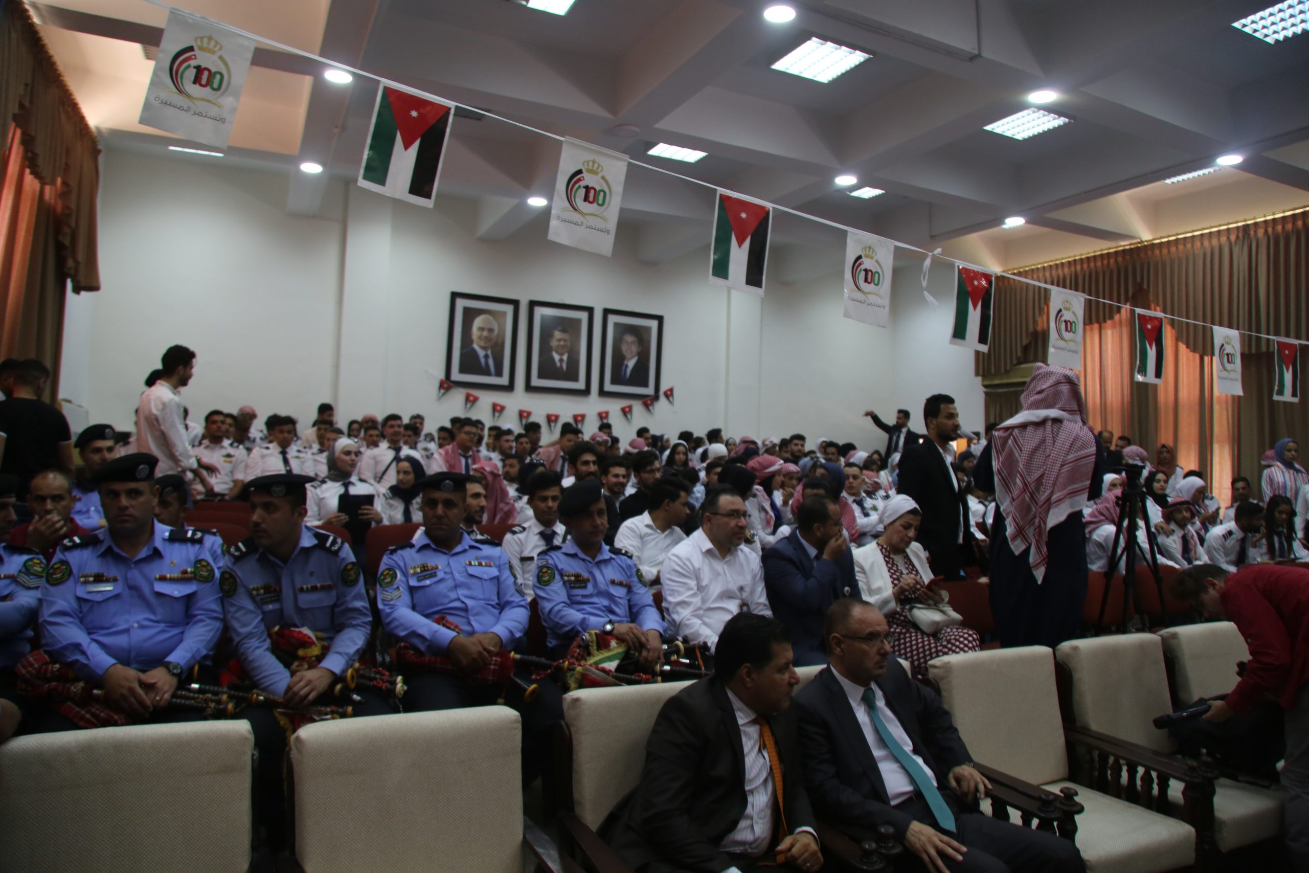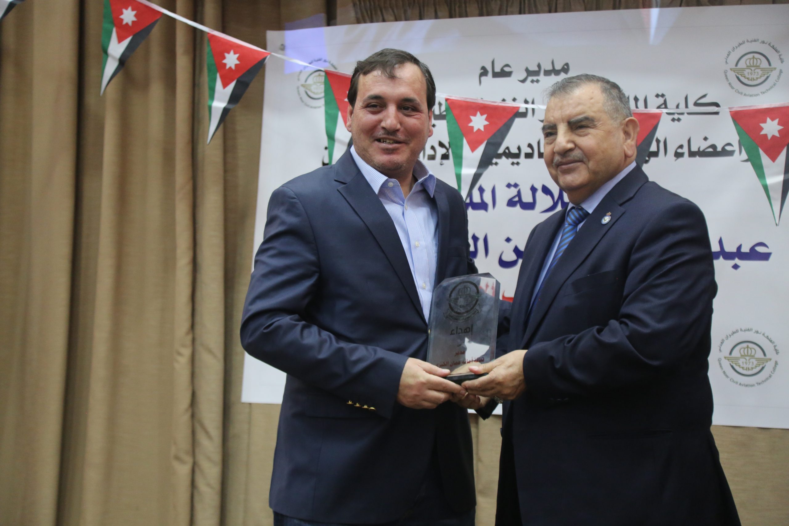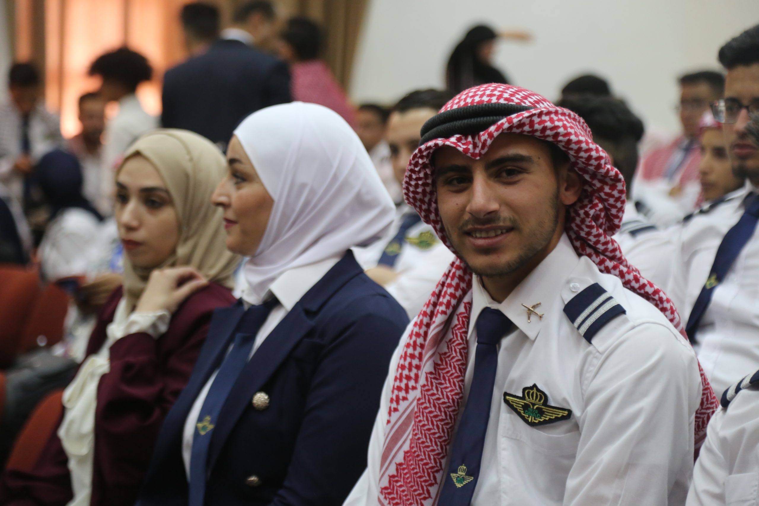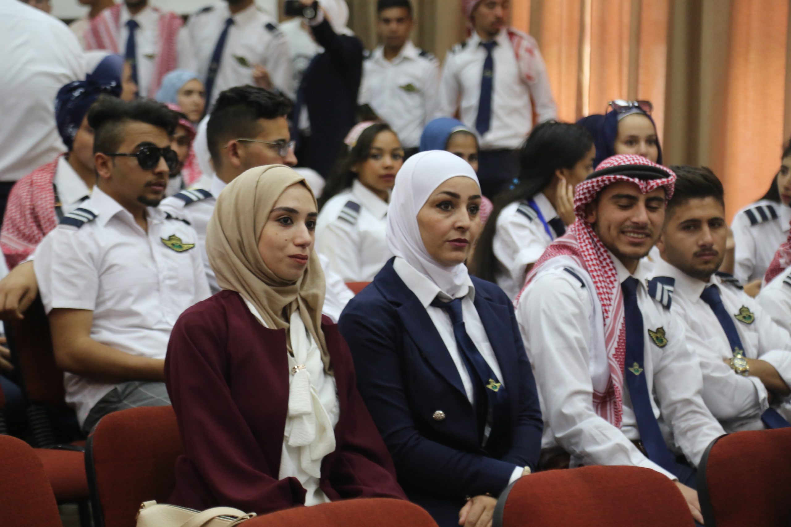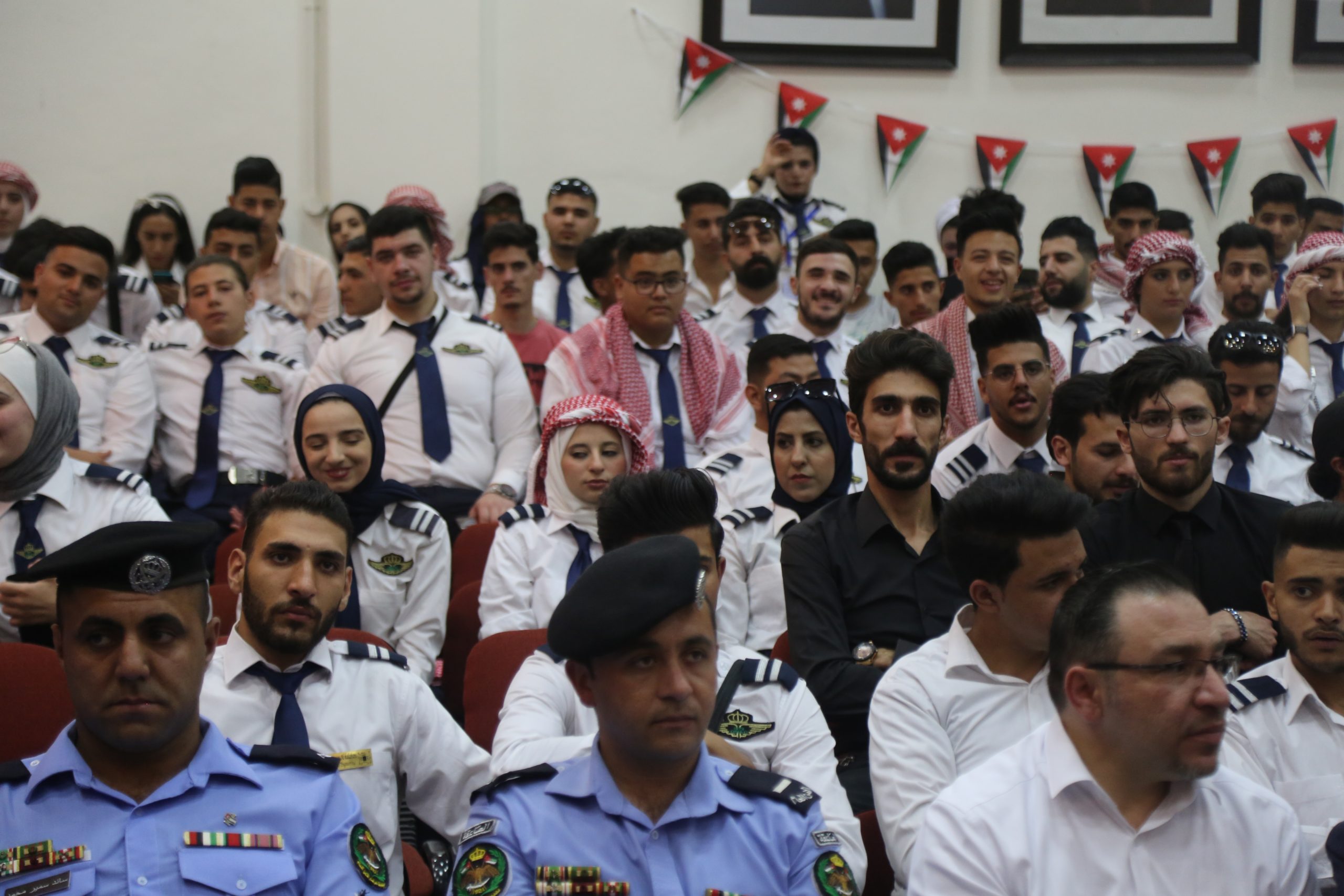 حيث جرى الحفل في مسرح الكلية بحضور كبير من إدارات مطار عمان المدني والأجهزة الأمنية والطلبة في الكلية وأكاديمية الطيران الملكية الأردنية.