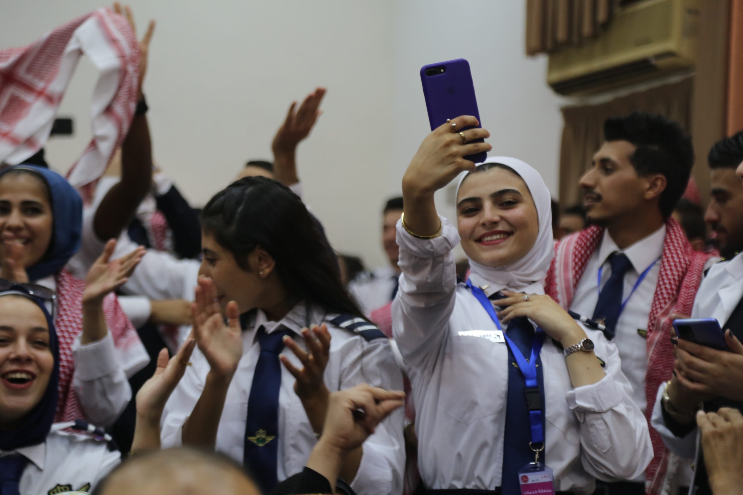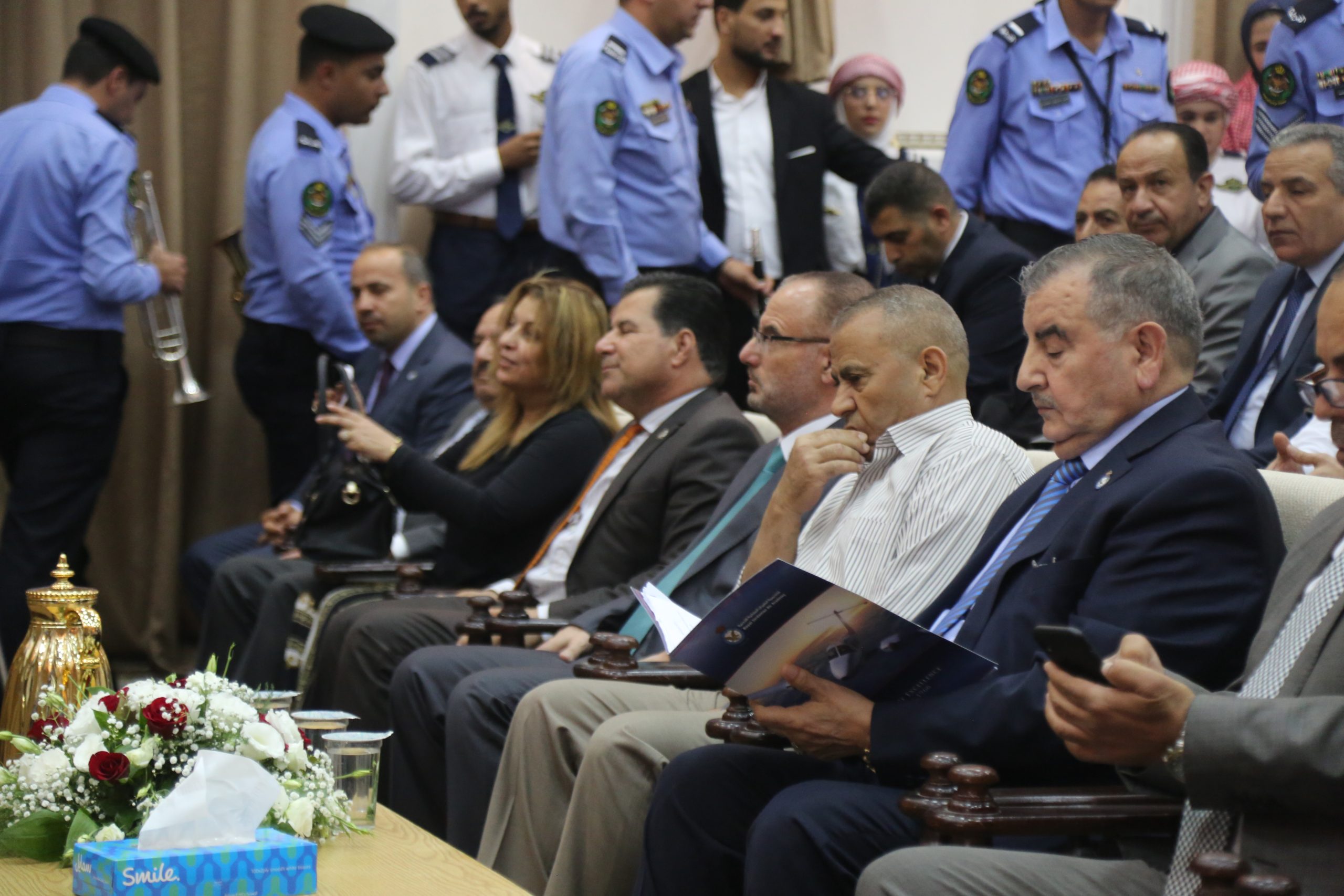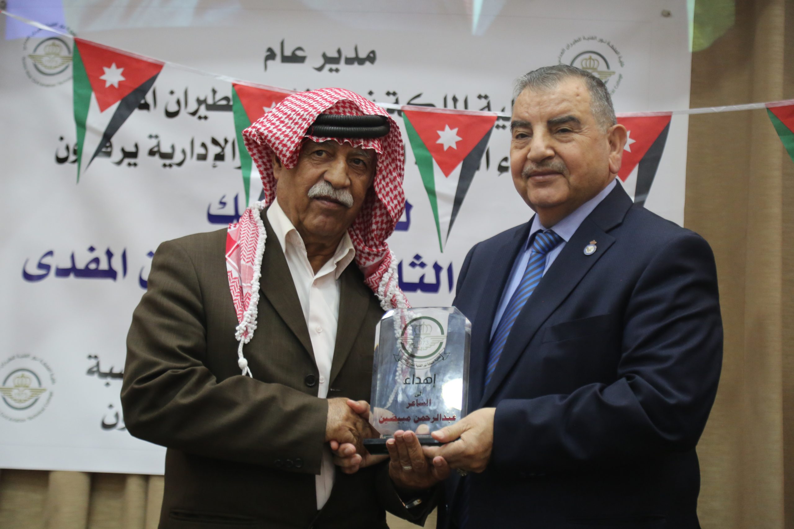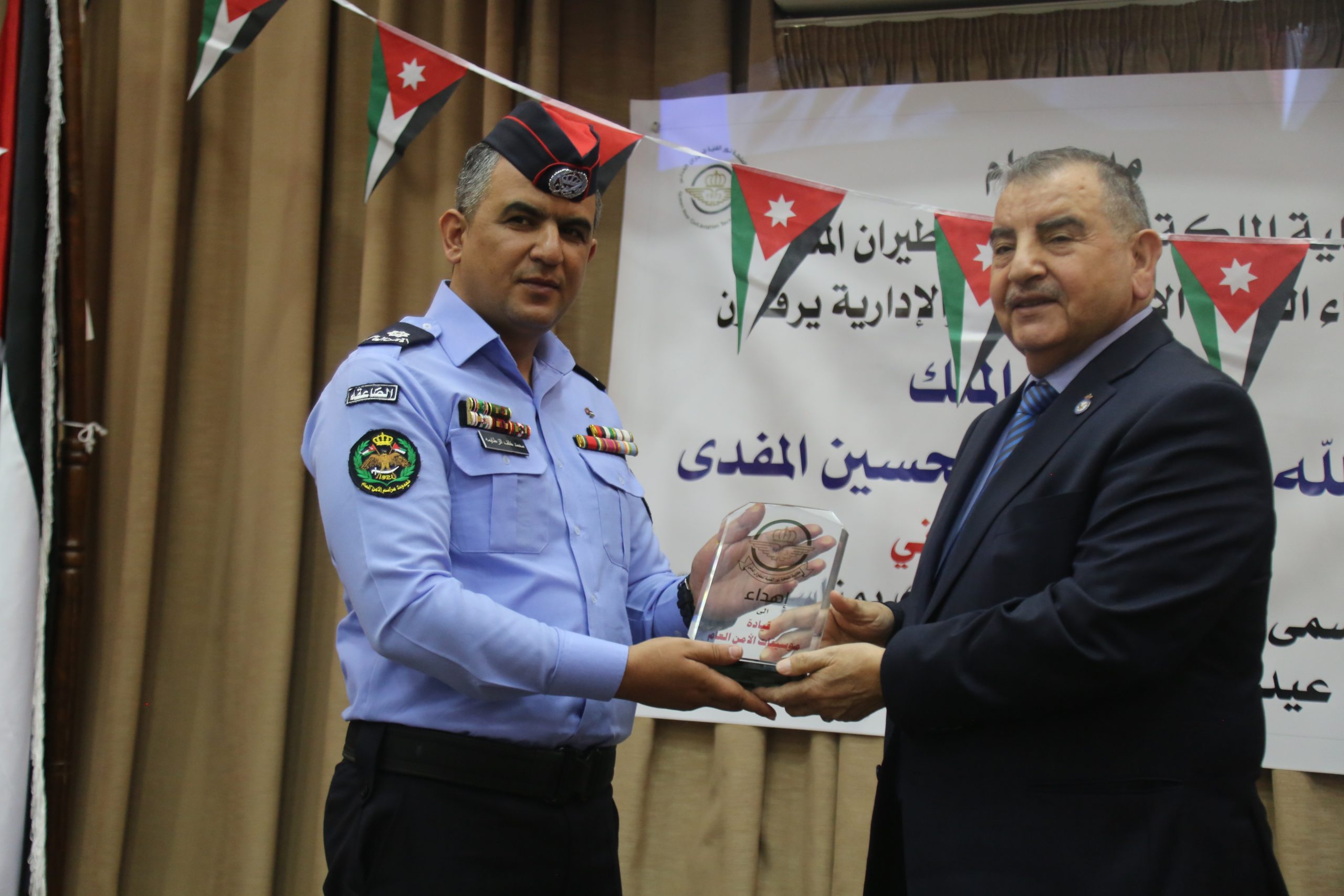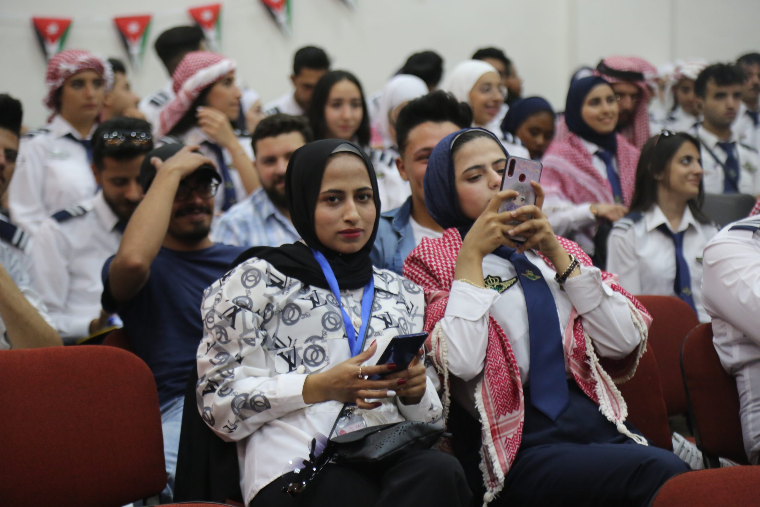 حيث جرى الحفل في مسرح الكلية بحضور كبير من إدارات مطار عمان المدني والأجهزة الأمنية والطلبة في الكلية وأكاديمية الطيران الملكية الأردنية.