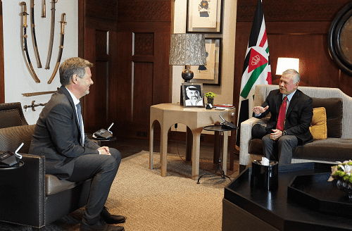 الملك يستقبل نائب المستشار الألماني بالحسينية On يونيو 8, 2022 Share وكالة الناس ــ استقبل جلالة الملك عبدالله الثاني نائب المستشار الألماني والوزير الاتحادي للشؤون الاقتصادية وحماية المناخ الدكتور روبرت هابيك في قصر الحسينية
