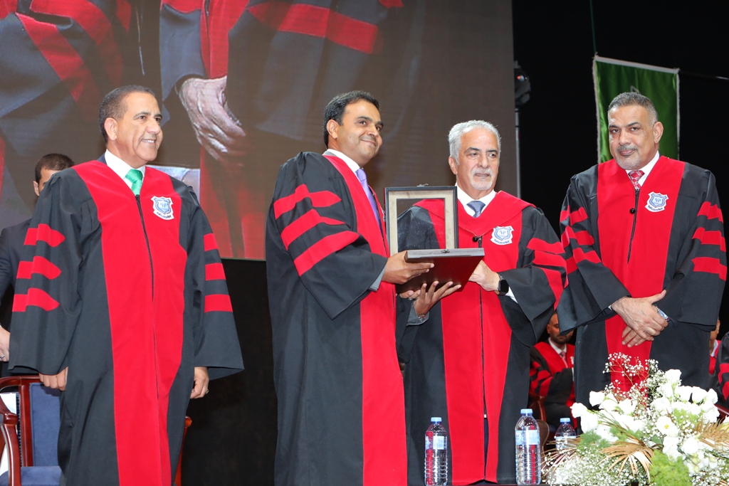 •وقام الاستاذ الدكتور ساري حمدان بتكريم الباحث أ.د. مصلح محمد أبو الحج – كلية تقنية المعلومات ضمن قائمة اعضاء الهيئة التدريسية الأوائل في الكليات للأبحاث المنشورة المحكمة والمدرجة ضمن قواعد بيانات Scopus لاخر خمس سنوات.