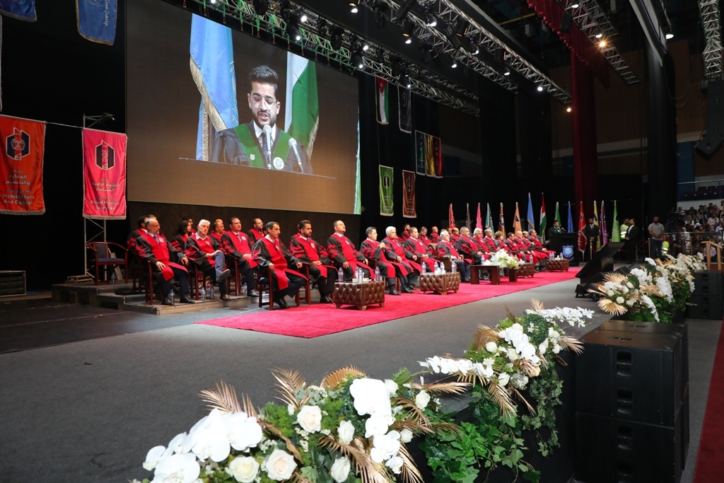 ثم أضاف : لقد حرصت الجامعة على اعداد طلبتها اعداداً علمياً وثقافياً واجتماعياً من خلال برامجها التعليمية وخدماتها التربوية والارشادية والأكاديمية التي تميزت بالسبق والريادة بين غيرها من الجامعات ، فمنذ تأسيسها على يد المرحوم الدكتور احمد الحوراني اهتمت الجامعة بالمحافظة على تقاليد التفوق والتميز والارتقاء بمستوى التحصيل العلمي كمنطلق نحو التفوق والابداع والتجديد.