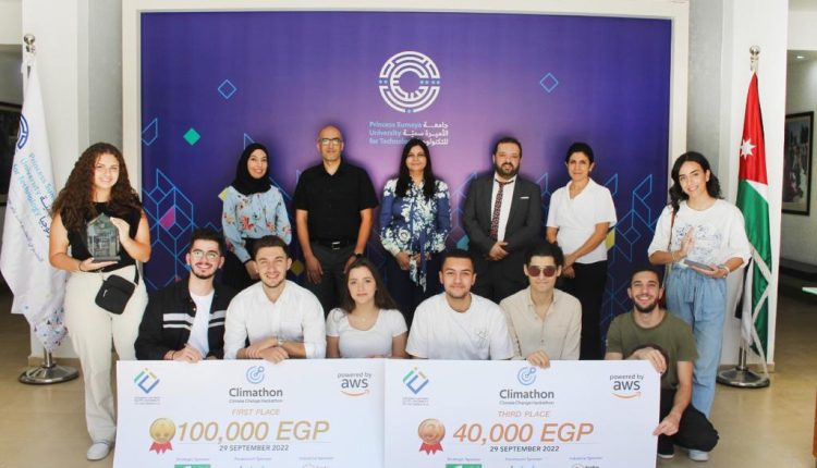 وكالة الناس – فاز فريقان من كلية الملك الحسين لعلوم الحوسبة في جامعة الأميرة سمية للتكنولوجيا بالمركزين الأول والثالث بمسابقة هاكاثون التغير المناخي (Climathon) التي نظمتها جامعة مصر للمعلوماتية، بالشراكة مع شركة أمازون العالمية، وبمشاركة ١٧٠ فريق من ٨٠ جامعة و ٣٣ دولة.
