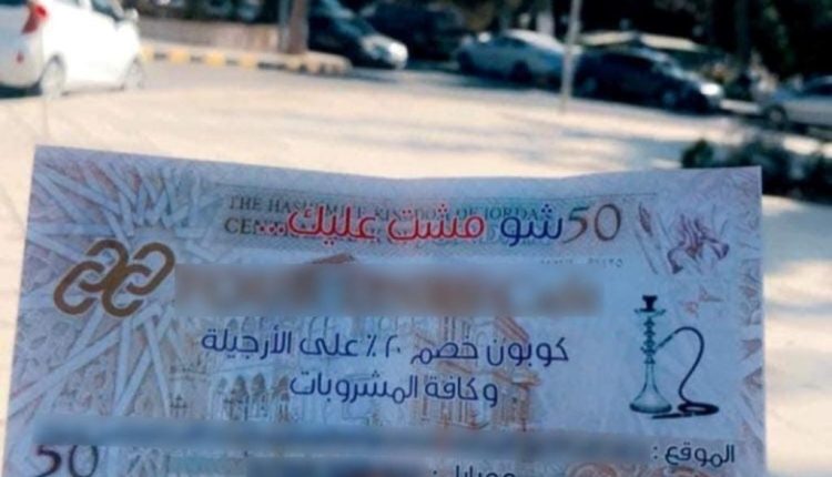 وكالة الناس ــ بعد أن أوقفت الأجهزة الأمنية مالك مقهى في العاصمة الأردنية عمّان، بسبب طريقة إعلانية استخدم خلالها أوراقاً طبع عليها فئة “50” ديناراً النقدية للإعلان عن افتتاح مقهاه، وردت تساؤلات عن العقوبة المتوقعة على مالك المقهى.