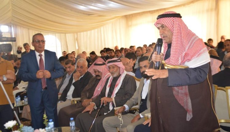 وتراس الجاهة الكريمة باسم عشيرة الحجاج الدكتور الشيخ عبد الله الدبوبي واستقبل الجاهة واعطى عن عشيرة الحسبان الشيخ ضيف الله القلاب شيخ مشايخ قبيلة بني حسن ،