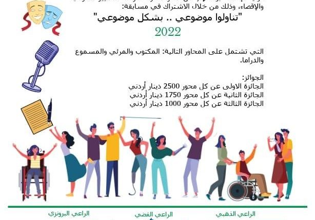 يذكر أنّ جائزة “تناولوا موضوعي بشكل موضوعي” السنوية هي الأولى من نوعها في المملكة في مجال التناول الإعلامي لقضايا وحقوق الأشخاص ذوي الإعاقة، كما يمكن المشاركة في نسخة هذا العام من المسابقة لغاية 31 تشرين الأول عبر الموقع الإلكتروني للمجلس.