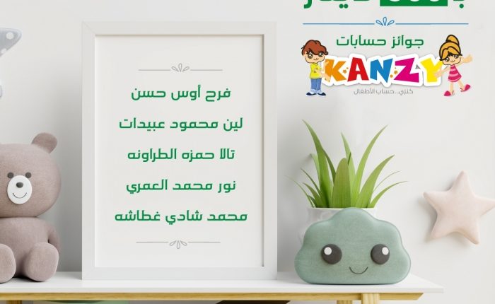 وقد أعلن البنك فوز كل من الطفلة فرح حسن، والطفلة لين عبيدات، والطفلة تالا الطراونة، والطفلة نور العمري، فضلاً عن الطفل محمد غطاشه، بالجائزة النقدية لحساب توفير الأطفال “كنزي”.