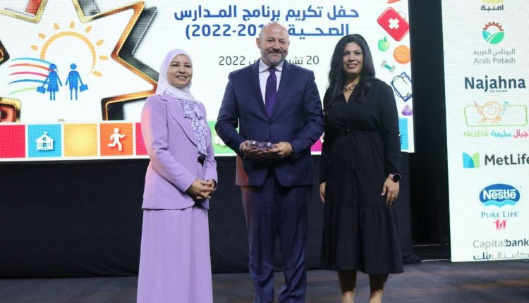 وكالة الناس – كرّمت الجمعية الملكية للتوعية الصحية بحضور الأمين العام لوزارة التربية والتعليم للشؤون المالية والإدارية الدكتورة نجوى القبيلات، شركة أمنية لدورها المميز في دعم برنامج المدارس الصحية في كل من محافظتي الزرقاء وإربد، والذي أسهم في تعزيز الممارسات الصحية لدىما يزيد عن 4,000 طالباً وطالبة وعدداً منالمدرسين، وجعل بيئة التعلم في هذه المدارس أكثر صحة وأماناً لهؤلاء الطلبة.