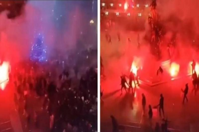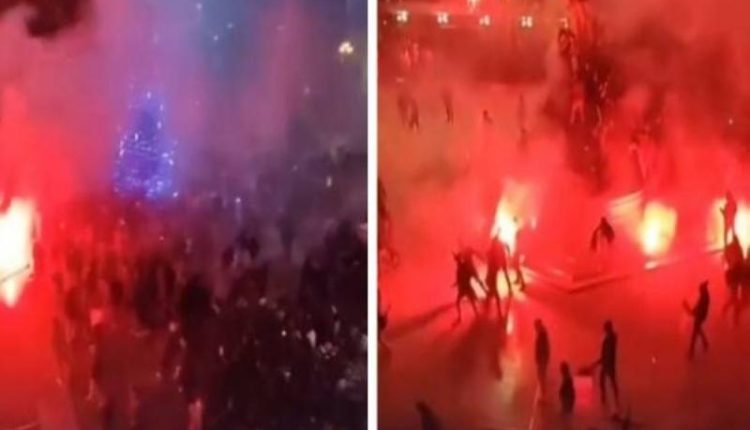 وكالة الناس ــ أظهر مقطع فيديو، مشجعين مغاربة وفرنسيين يتبادلون رمي الكراسي والحجارة وإشعال النار في باريس.