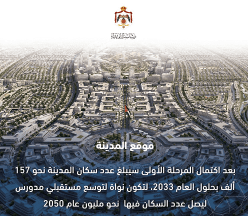 وبينت أن المدينة الجديدة تستفيد من شبكة السكك الحديدية الجديدة والميناء البري الجديد في الماضونة، ومشاريع النقل العام المرتبطة بممر عمان التنموي .