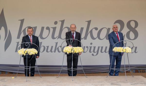 الصفدي والحنيطي وحسني يضعون أكاليلاً من الزهور على نصب الإبادة الجماعية بكيغالي