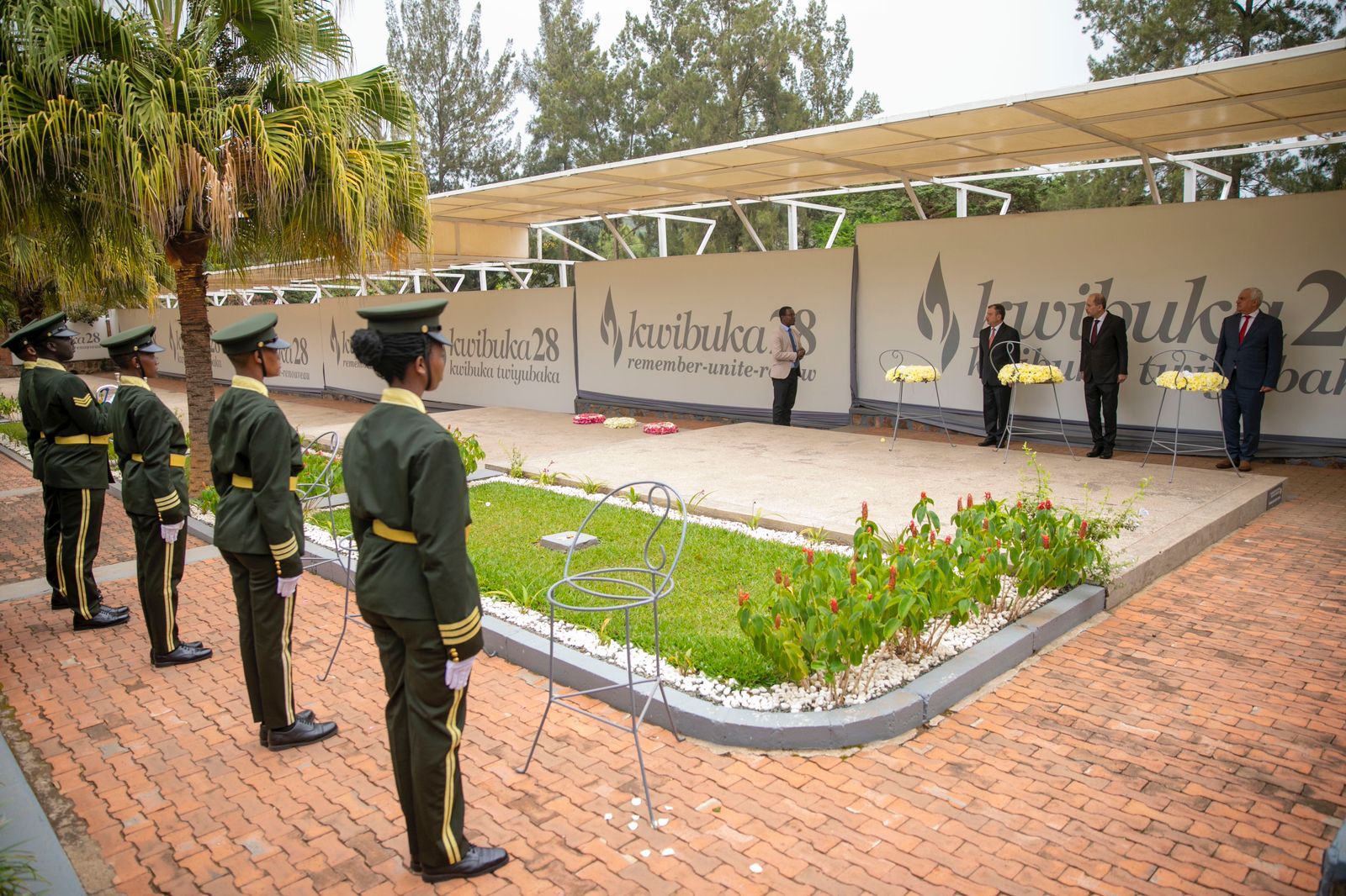 وفي مستهل الزيارة، وضع الصفدي والحنيطي وحسني أكاليلاً من الزهور على نصب الإبادة الجماعية في كيغالي.