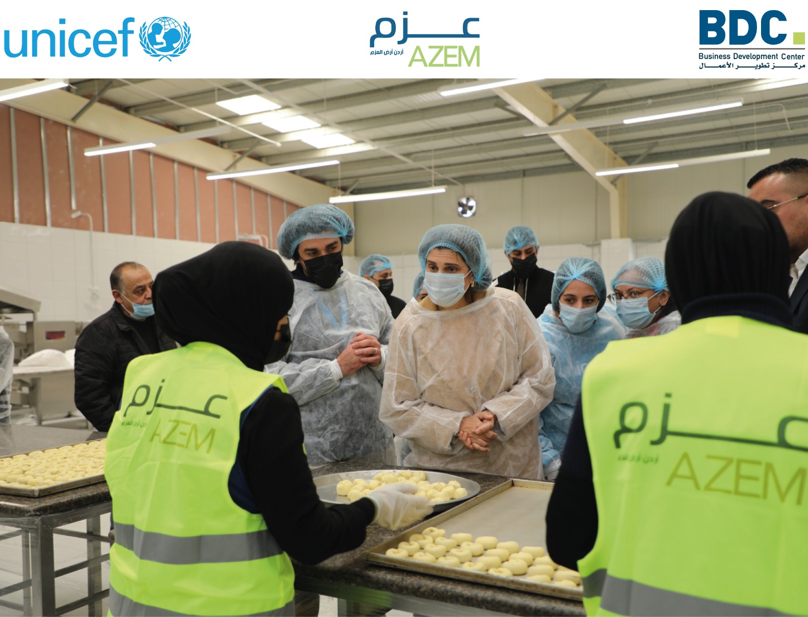 وكالة الناس –  – اطلعت سمو الاميرة دينا مرعد على نتائج مشروع عزم “التدريب المهني للتشغيل” من خلال زيارة ميدانية برفقة الجهة الداعمة منظمة الامم المتحدة للطفولة – Unicef ومركز تطوير الاعمال – BDC كجهة تنفيذية داخل مصنع العنتباوي في منطقة عين الباشا.
