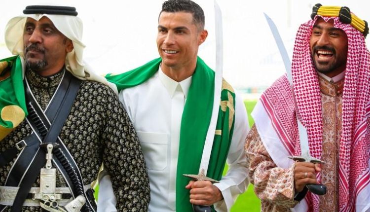وفي لقطات أخرى، شوهد كريستيانو وهو يمسك بالسيف ويؤدي رقصة العرضة، كما ارتدى الزي التراثي السعودي المعروف باسم “المردون”.