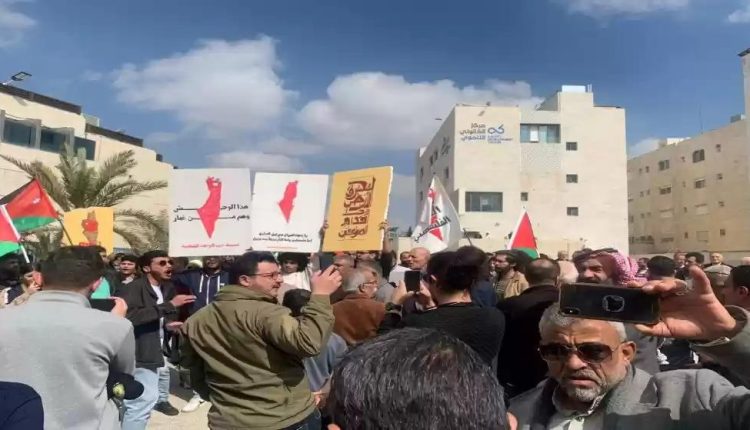 كما طالب المشاركون بـ “طرد السفير الإسرائيلي من عمان وسحب السفير الأردني من تل أبيب وإلغاء اتفاقية وادي عربة، إضافة إلى إلغاء جميع الاتفاقيات بين الأردن وإسرائيل”.
