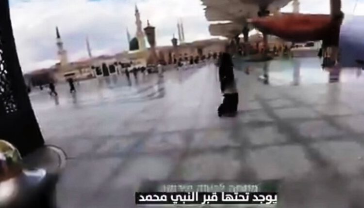 وبعدها ظهر على بوابات المسجد النبوي، وأشار لقبر النبي محمد، قائلا: “القبة الخضراء التي ترونها خلفي هي قبر النبي محمد ويوجد تحتها قبره”.