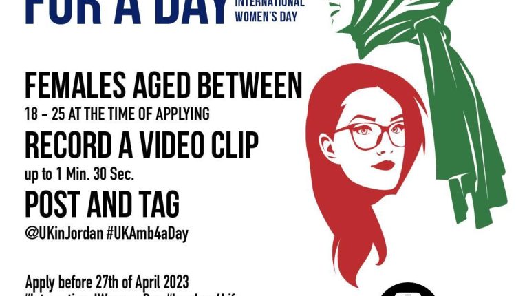 وبينت السفارة انه يمكن للشابات في الأردن التقدم بحلول 27 نيسان 2023 لشغل منصب “سفيرة ليوم واحد” في السفارة البريطانية في عمان.