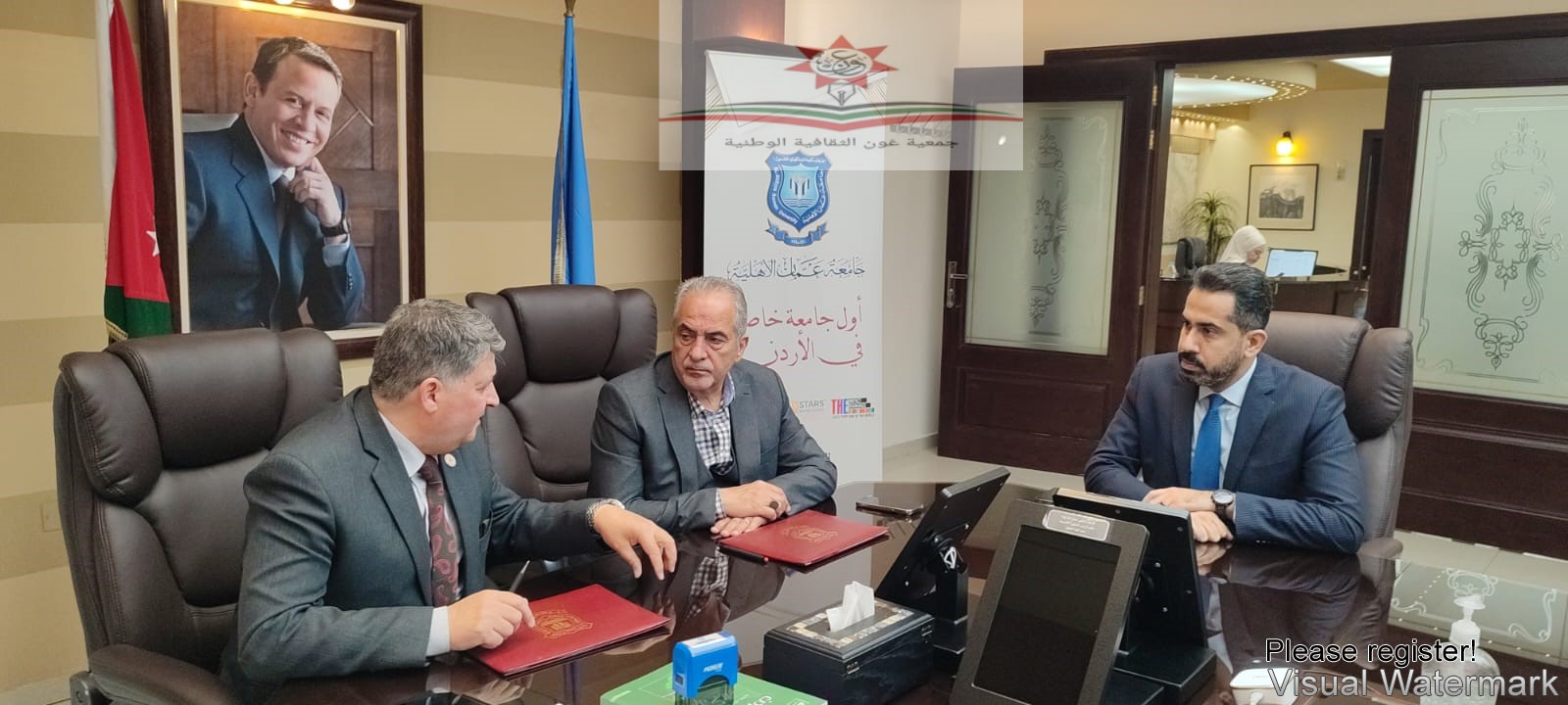 وجاء توقيع المذكرة نتاجاً للزيارة السابقة التي قام بها وفد الجمعية الذي أطلع خلالها رئيس الجامعة على رؤية الجمعية وأهدافها والمشروعات التي تعمل على تنفيذها بتوثيق الجهود الوطنية في بناء الدولة الأردنية والدفاع عن قضايا الأمة العادلة وفي مقدمتها القضية الفلسطينية.