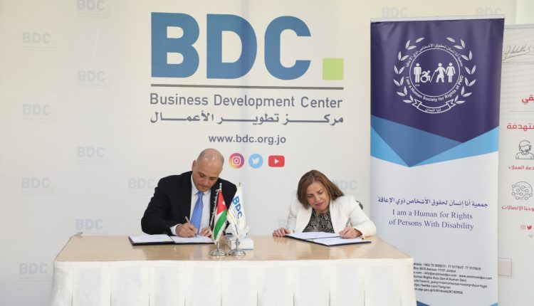 وكالة الناس – وقع مركز تطوير الأعمال – BDC وجمعية أنا إنسان لحقوق الأشخاص ذوي الإعاقة مذكرة تفاهم بهدف إنشاء شبكة وقاعدة بيانات مشتركة بين الفريقين للتعاون في مجال إدماج ورفد سوق العمل بكوادر مؤهلة من ذوي الإعاقة لغايات التشغيل والتشغيل الذاتي.