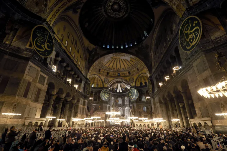 بمناسبة ذكرى فتح القسطنطينية وفوز أردوغان.. تكبيرات وإقبال كثيف على صلاة الفجر بمسجد آيا صوفيا