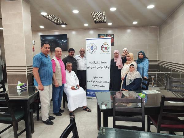 وجرى خلال اللقاء، استعراض خطط وبرامج الجمعية ونشاطاتها الموجهة لخدمة ورعاية مرضى السرطان في الطفيلة والذين يصل عددهم إلى حوالي 120 مريضاً.