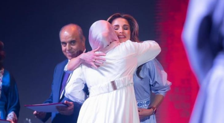 وخلال الحفل الذي أقيم في قصر الثّقافة بمدينة الحسين للشّباب، وزعت جلالتها الدّروع والشّهادات على الفائزين، وقدمت التهنئة لهم.