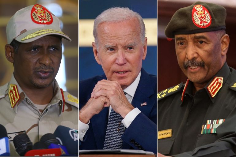 وقبل أيام، وعد بيان لمستشار الأمن القومي جاك سوليفان، “مواصلة الولايات المتحدة بذل قصارى جهودها للرد على أعمال العنف والمساعدة في إنهاء النزاع”. وقال “ونتبع ذلك بفرض عقوبات اقتصادية وقيود على منح التأشيرات لأطراف فاعلة تقوم بأعمال العنف ونشر تحديث للتنبيه التجاري الخاص بالسودان. وتهدف هذه التدابير إلى محاسبة المسؤولين عن تقويض السلام والأمن والاستقرار في السودان”.