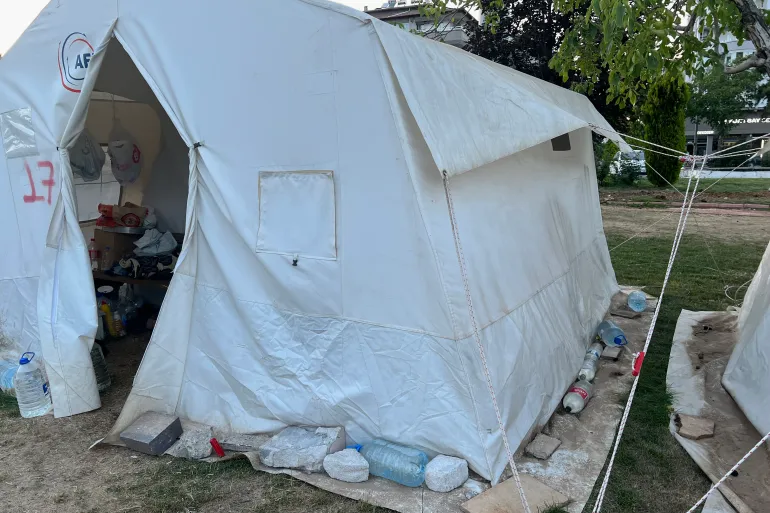 ورغم مرور أكثر من 4 أشهر على الزلزال، فلا يزال اللاجئ السوري أكرم العمر وأسرته يقيمون في خيمة خُصصت مثلها الآلاف لمنكوبي الكارثة بإحدى الساحات في مدينة غازي عنتاب، جراء فقدان منزله المستأجر في بلدة نورداغ.