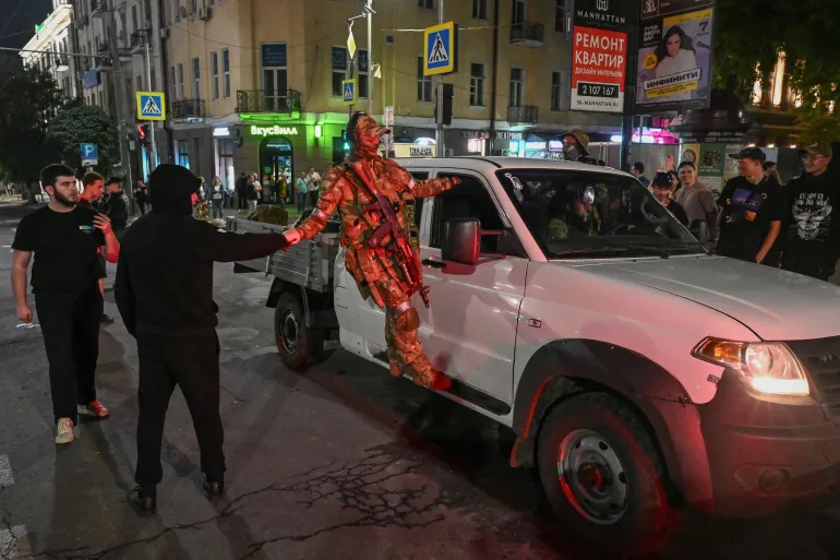 أما السؤال الثاني فتتبعت فيه الصحيفة رد فعل موسكو التي نفت الخبر، لكن التمرد انطلق بالفعل، واحتل المتمرد منطقة روستوف أون دون بجنوب البلاد من دون إطلاق رصاصة، ليتحدث بوتين فجر السبت، منددا بما وصفه بأنه “طعنة في ظهر روسيا”، وبعدئذ دعا قادة مجلسي البرلمان الناس إلى دعم الرئيس بوتين، ودان العديد من كبار الشخصيات العسكرية انقلاب بريغوجين.