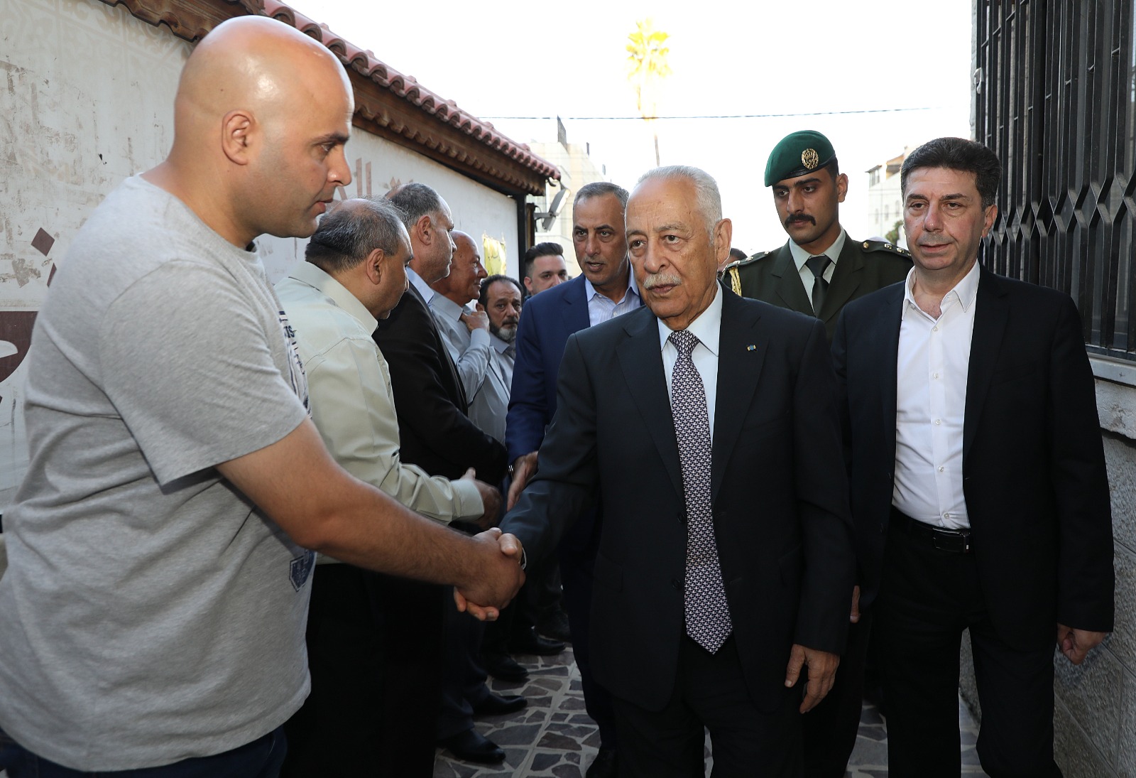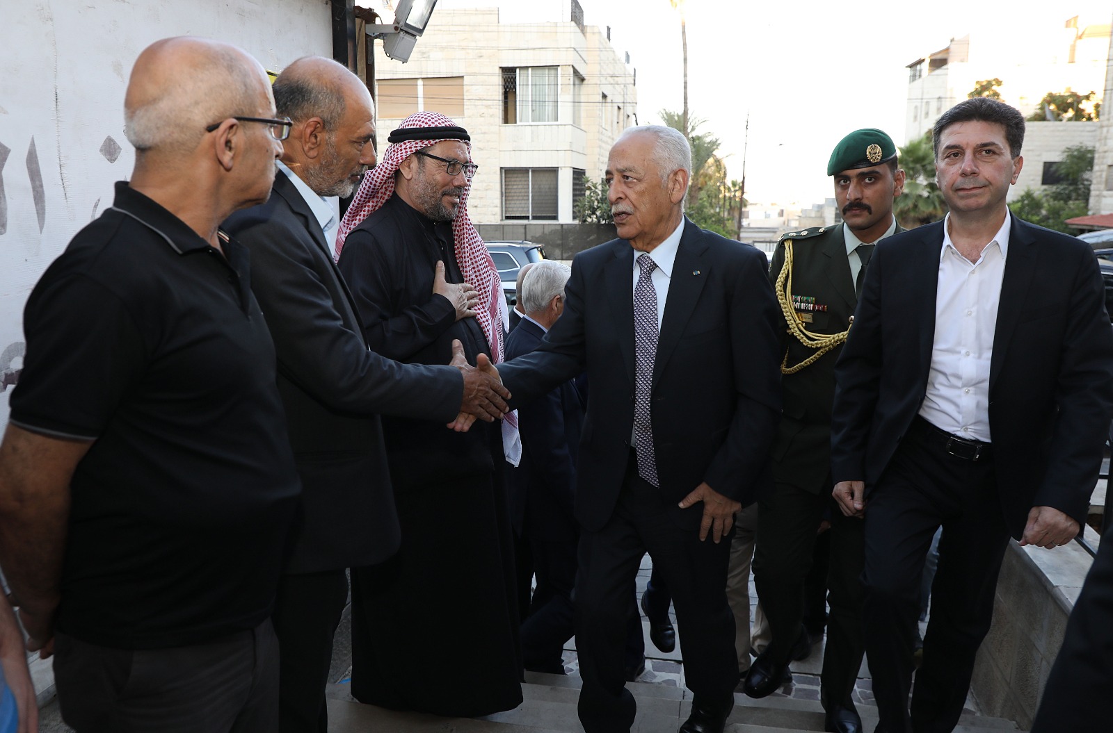 وكالة الناس – مندوبا عن جلالة الملك عبد الله الثاني بن الحسين المعظم وسمو الامير حسين ولي العهد حفظهم الله ورعاهم معالي رئيس الديوان الملكي الهاشمي السيد يوسف حسن العيسوي يقدم واجب العزاء اليوم الخميس الموافق ٢٠٢٣/٦/٢٩ بوفاة المرحومة شهندة شكري الخاروف ( ام طارق) والدة النائب الاسبق امجد ناجح المسلماني .