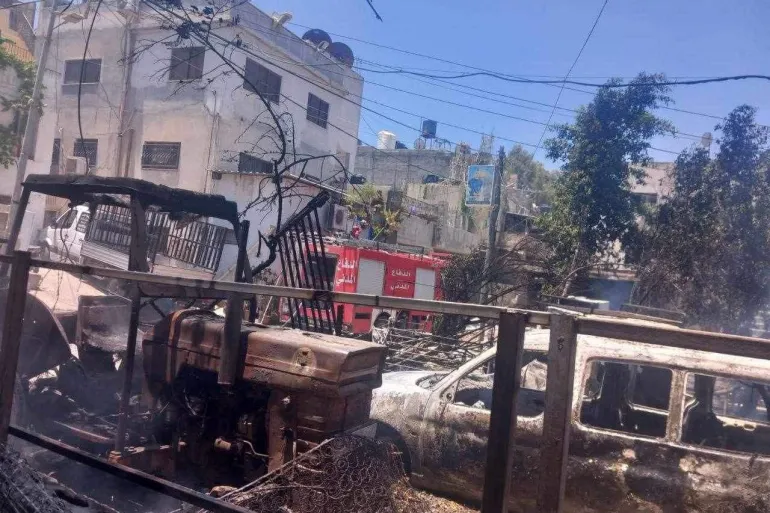 وإضافة إلى ذلك جرفت الآليات العسكرية شارع المسرح وأغلقت بالسواتر الترابية مدخله، ودمرت خدمات البنية التحتية من الماء والكهرباء ووسائل الاتصال المختلفة، قبل أن تحرق بنيران قذائفها مركبات المواطنين.