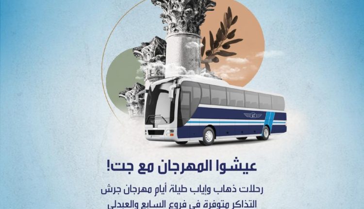 ا وكالة الناس : اكدت شركة النقليات السياحية الاردنية مالك العلامة التجارية “جت” استمرار التزامها في تسهيل استمرار فرح الاردنيين بالوصول الامن والسريع وضمن مواعيد ومحطات ركوب ثابتة للراغبين بحضور مهرجان جرش والذي ينطلق مساء اليوم.