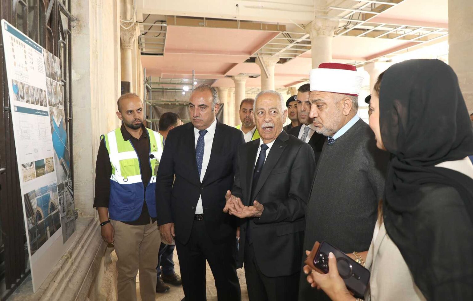 بالصور .. رئيس الديوان الملكي يتفقد مشروع اعادة تأهيل المسجد الحسيني
