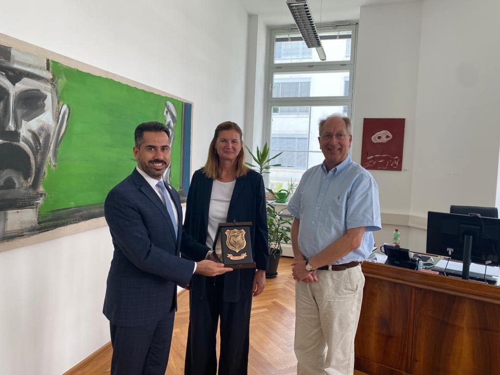 حيث التقى الدكتور السعود مع نائبة رئيس الجامعة لشؤون البحث العلمي والابتكار الدكتورة ميكيلا فرتز بحضور البروفيسور شاروخ شاريات.