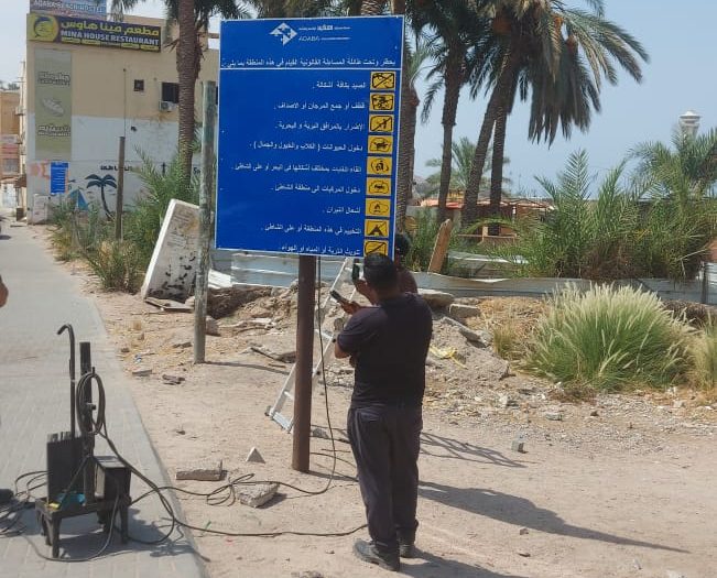 العقبة الخاصة : تركيب اللافتات التوعوية والإرشادية على مداخل الشواطئ لحماية البيئة البحرية