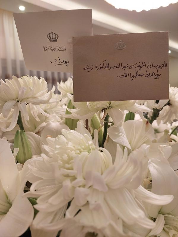وكالة الناس – افاجأ الأمير الحسين بن عبد الله الثاني، ولي العهد، والأميرة رجوة، عروسين بإرسال باقة ورد لهما بيوم زفافهما.