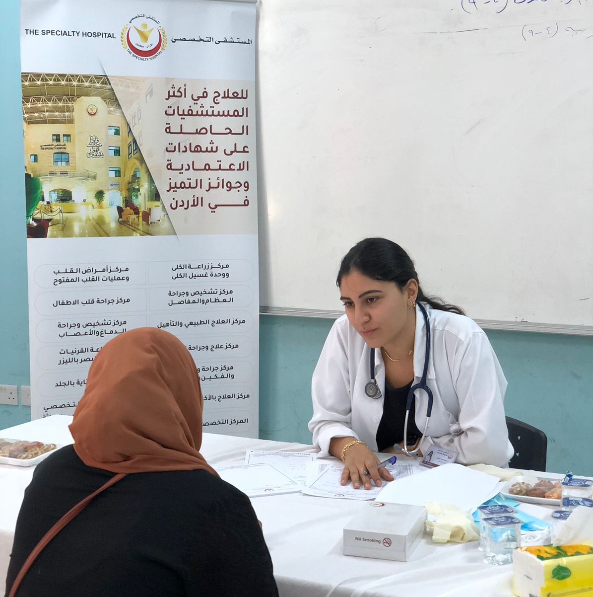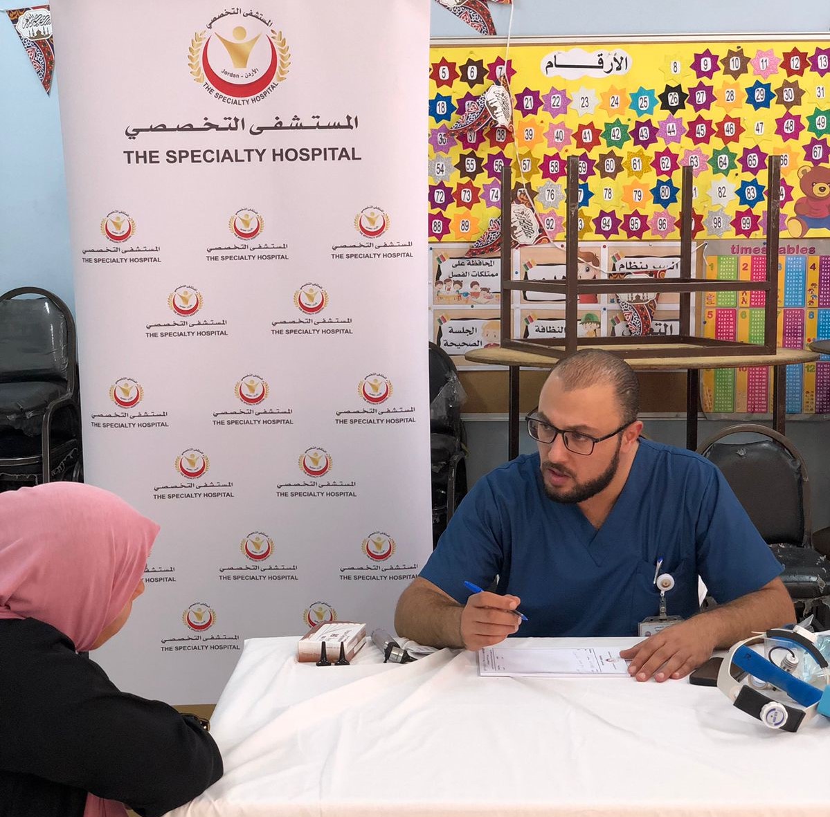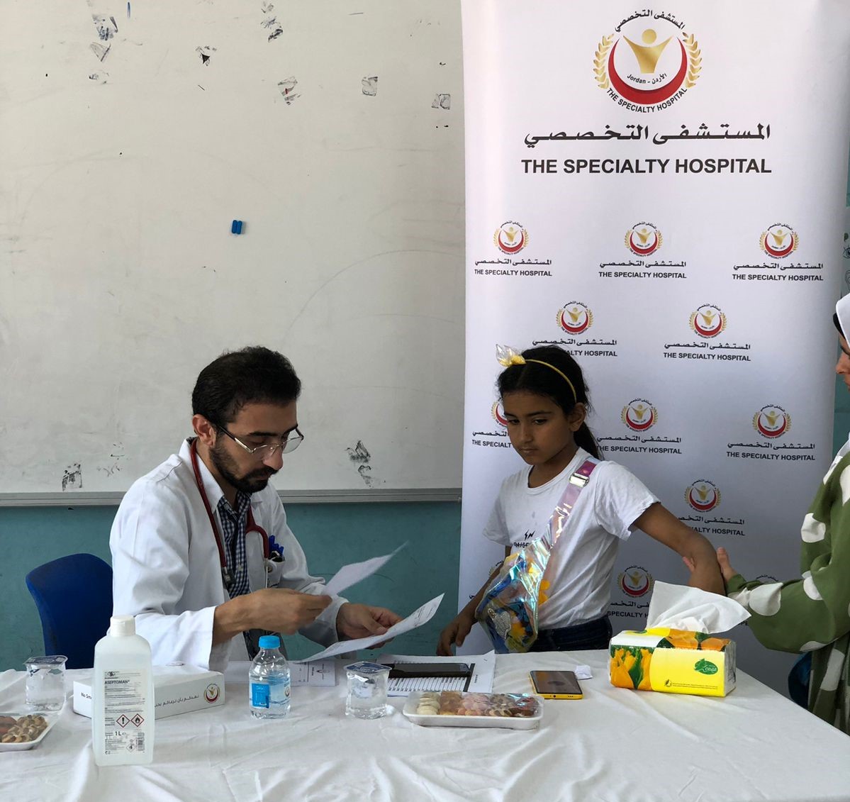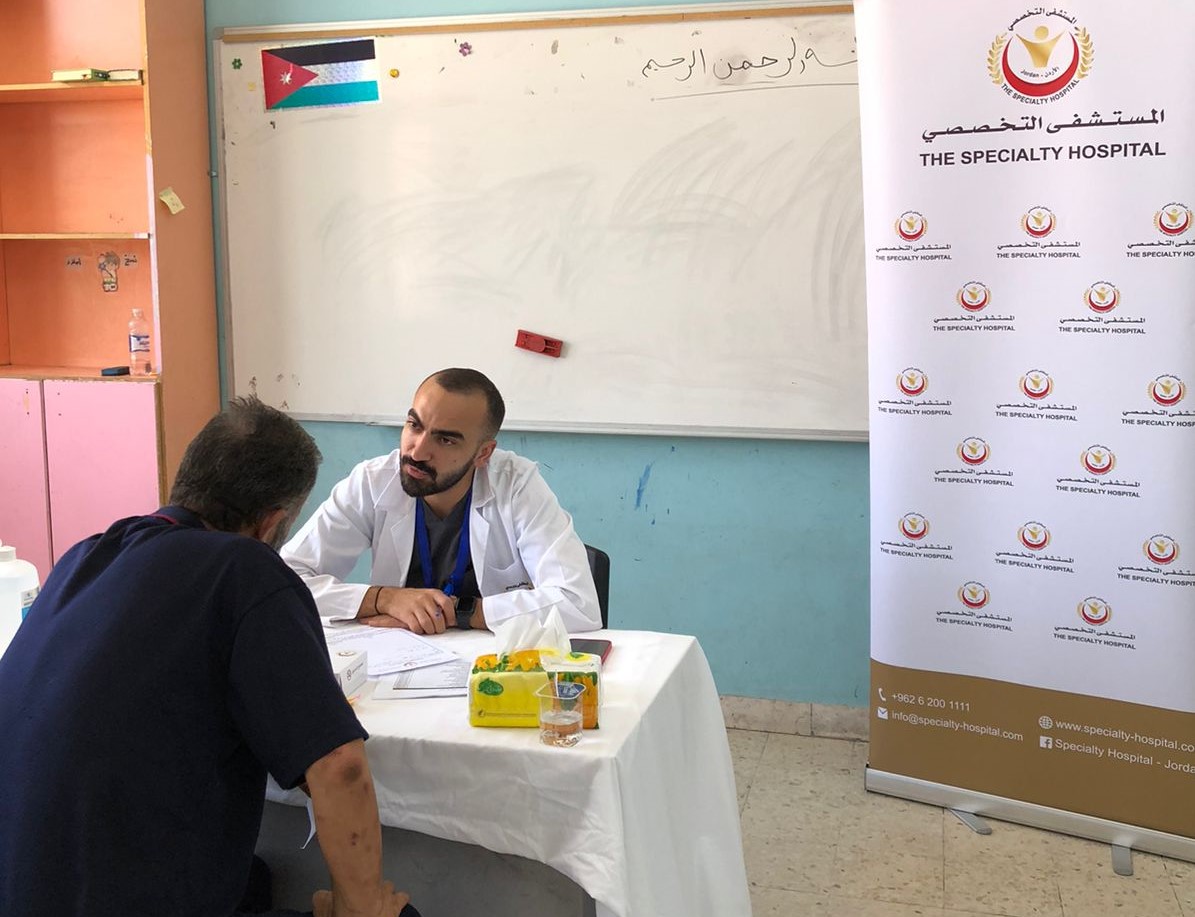 وقد قام المستشفى التخصصي بإرسال فريق طبي من كافة الاختصاصات ومنها (الجراحة العامة وجراحة العظام والنسائية والباطني والأطفال والمسالك والأنف والأذن والحنجرة وفحص النظر والصيدلية وطاقم متكامل من الكوادر التمريضية، مزودين بالأجهزة والمعدات والمستهلكات الطبية والأدوية، حيث شهد هذا النشاط إقبالاً كبيراً من أهالي لواء الهاشمية.