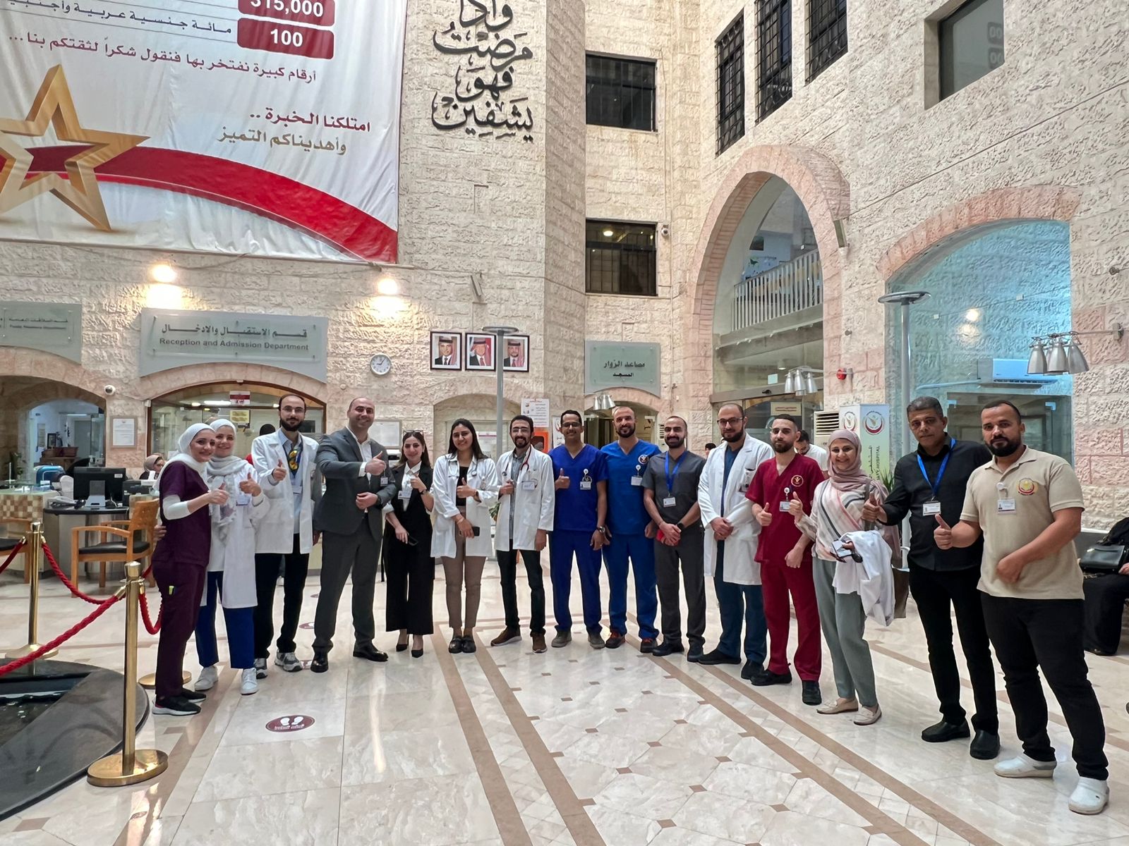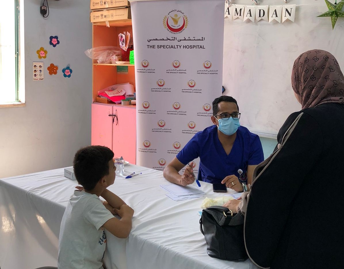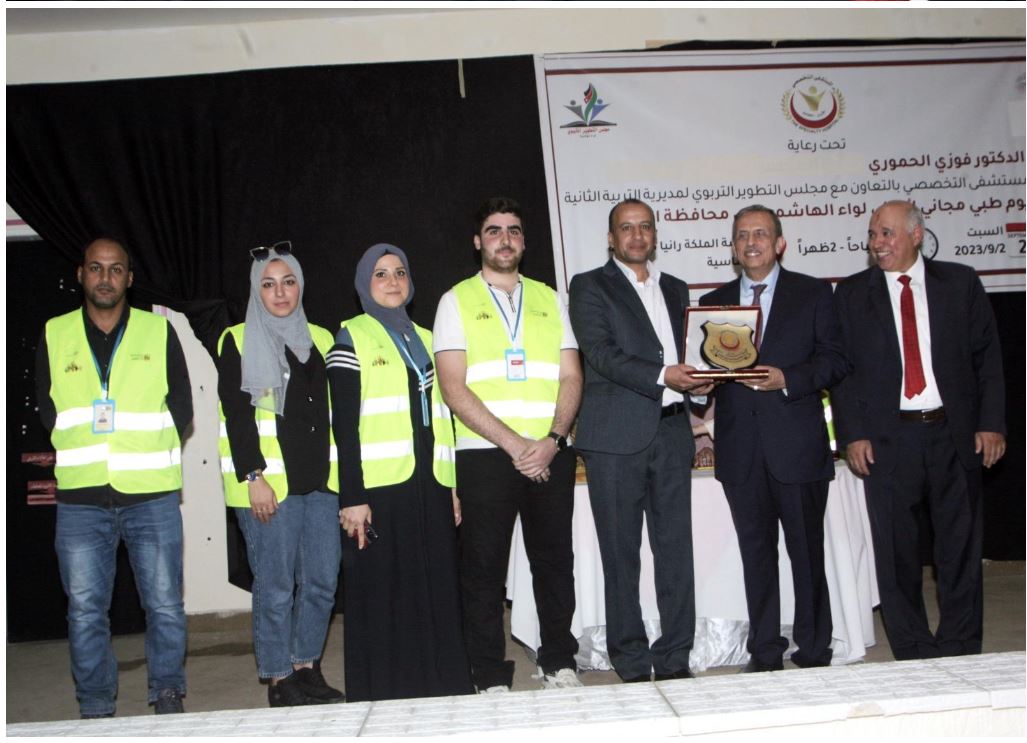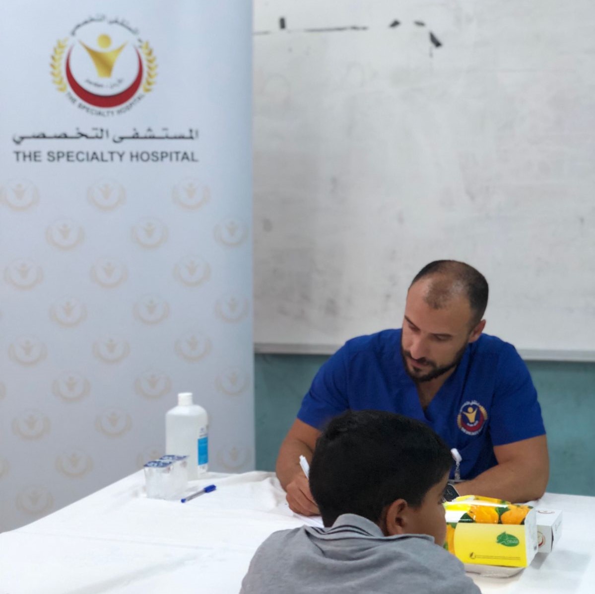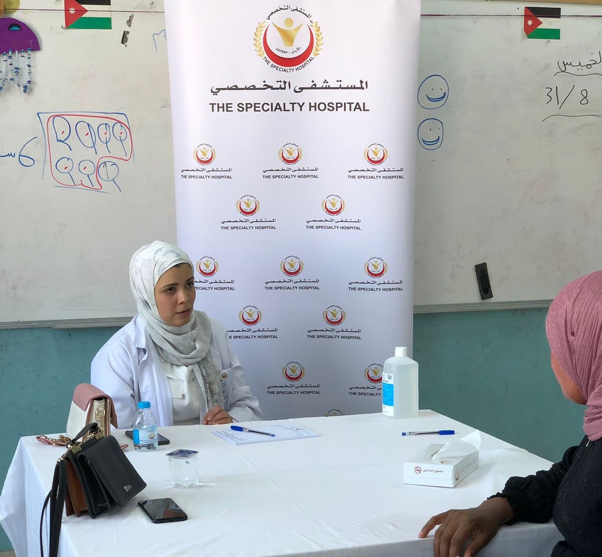 وقد قام المستشفى التخصصي بإرسال فريق طبي من كافة الاختصاصات ومنها (الجراحة العامة وجراحة العظام والنسائية والباطني والأطفال والمسالك والأنف والأذن والحنجرة وفحص النظر والصيدلية وطاقم متكامل من الكوادر التمريضية، مزودين بالأجهزة والمعدات والمستهلكات الطبية والأدوية، حيث شهد هذا النشاط إقبالاً كبيراً من أهالي لواء الهاشمية.