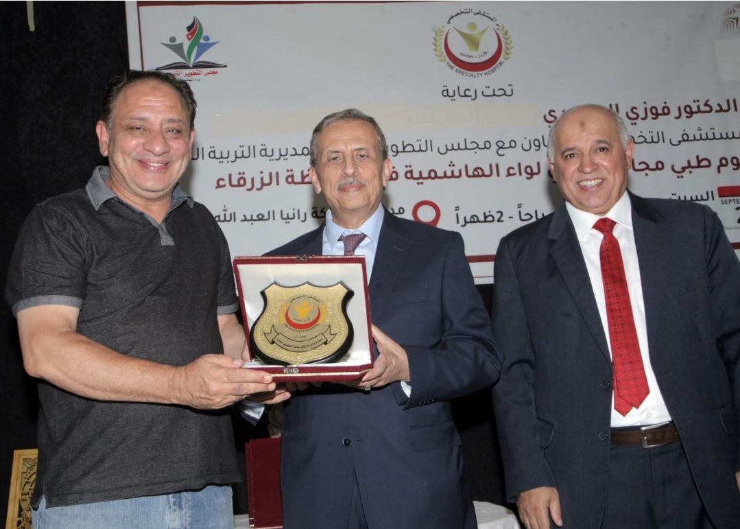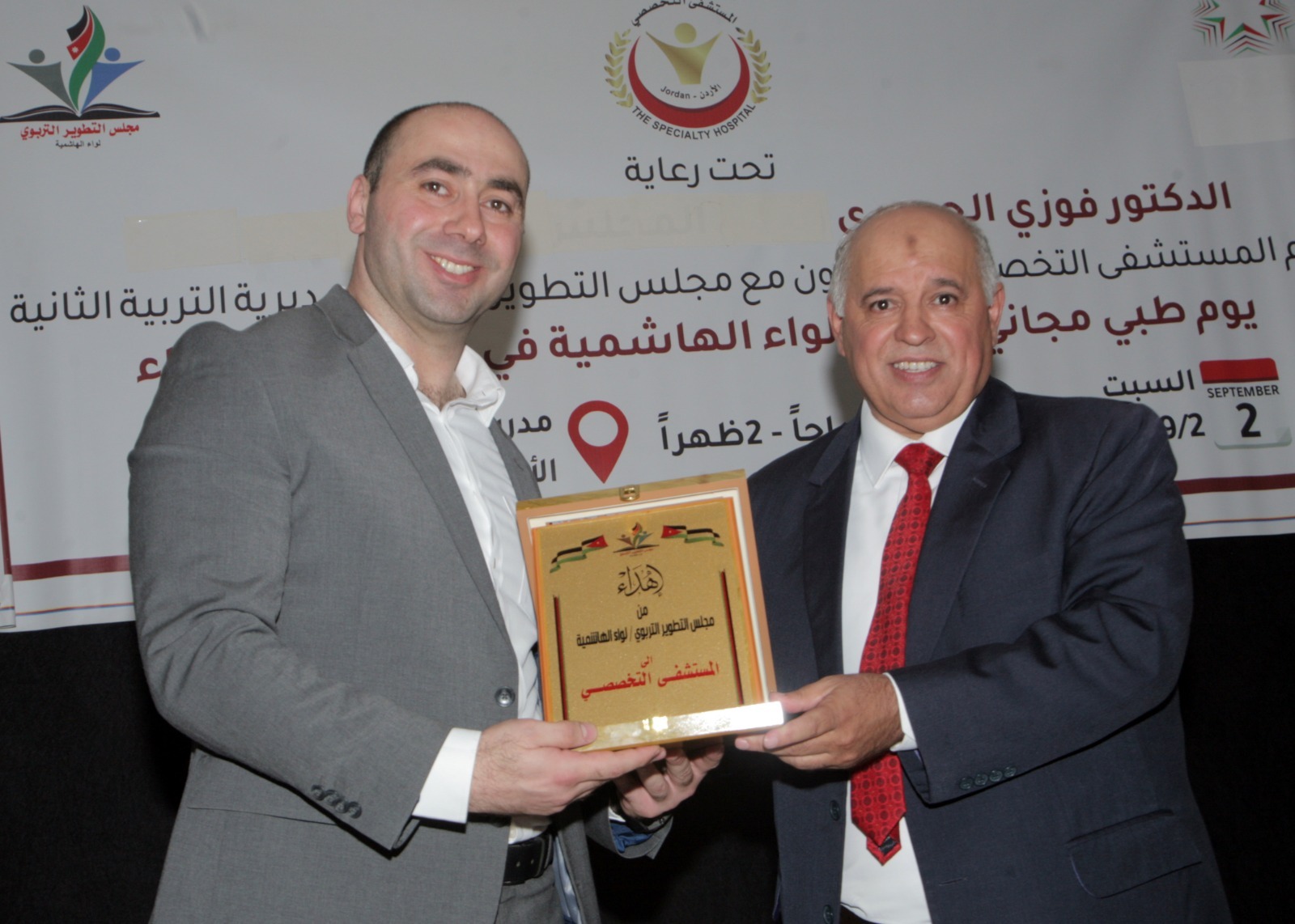 وأقيم اليوم الطبي المجاني الذي انتفع منه ما يزيد عن 500 مراجع من أهالي المنطقة تحت رعاية الدكتور فوزي الحموري رئيس هيئة مديري المستشفى التخصصي، وبحضور مندوبين عن مدير تربية الزرقاء الثانية ومدير صحة محافظة الزرقاء، وكل من رئيس بلدية الهاشمية السيد عبد الرحيم القلاب والدكتور عايد الزيود عضو مجلس التطوير التربوي لتربية الزرقاء الثانية ومديرة المدرسة السيدة سورية ترتير.