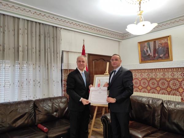 وعرض لأهمية منح هذا الوسام الملكي ومدلولاته التي تعكس تقديرا لمن يمنح له لدى جلالة الملك والمغرب.