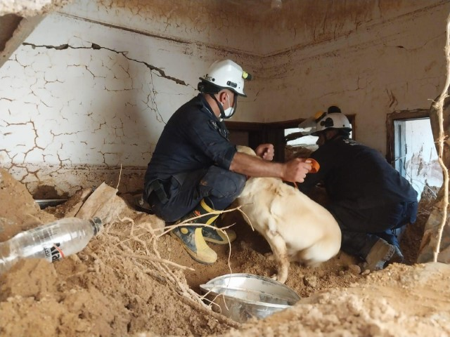 ونشرت المديرية مجموعة من الصور لعمليات البحث والإنقاذ، وعلقت عليها: لا وقت للراحة أو الانتظار … صور توثق بدء عمل فريق الانقاذ الدولي الاردني، منذ لحظة الوصول وصباح اليوم، لمساعدة الأشقاء الليبين في المناطق المتضررة من السيول والفيضانات في مدينة درنة”.