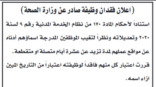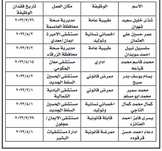 بالأسماء … فاقدون لوظائفهم في وزارة الصحة Last updated أكتوبر 2, 2023 Share وكالة الناس – أعلنت وزارة الصحة، اليوم الاثنين، عن فقدان موظفين لوظائفهم، وذلك نظرا لتغيبهم عن مواقع عملهم لمدة تزيد عن 10 أيام متصلة أو متقطعة. وتاليا الأسماء: Google News تابعونا عبر الأخبار باللغة الإنجليزية إشترك في قناة وكالة الناس الإخبارية تابع وكالة الناس الإخبارية على فيسبوك تابع وكالة الناس الإخبارية على تويتر تابعونا عبر تطبيق نبض