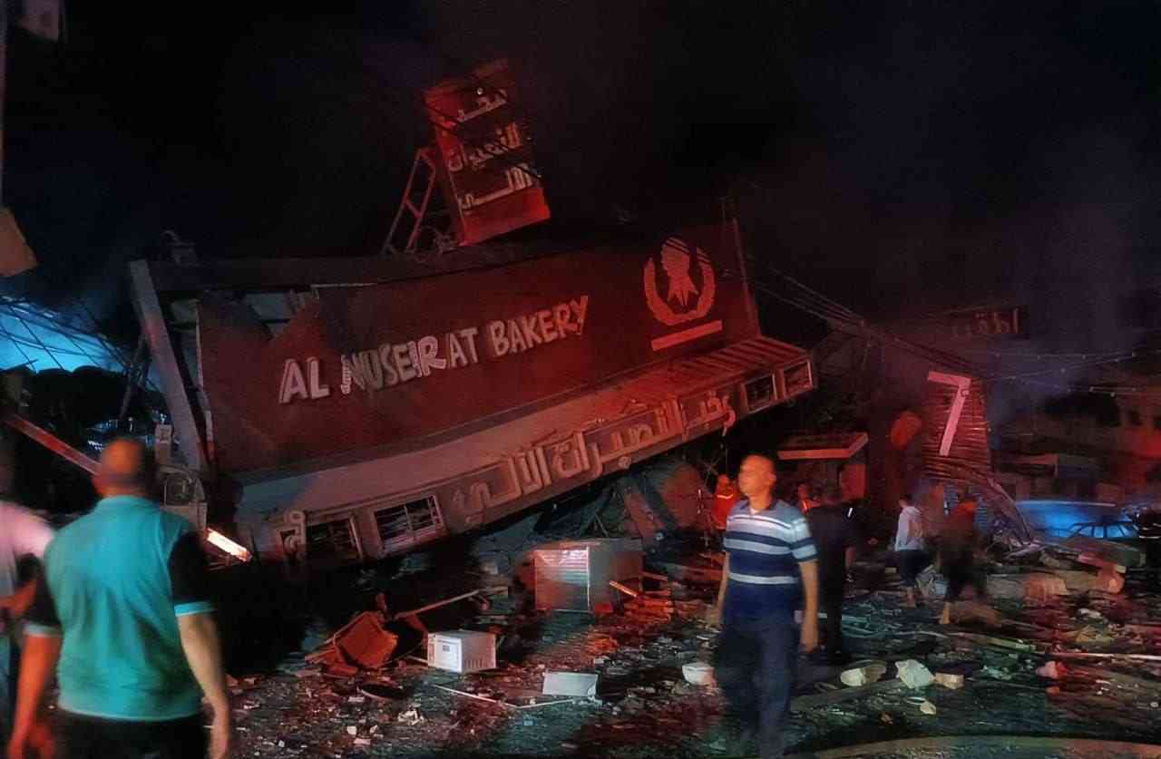 وأضافت المصادر أن طيران الاحتلال الحربي استهدف المخبز الذي يغذي النازحين وأهالي مخيم النصيرات وسط قطاع غزة، ووقوع إصابات خطيرة في صفوف العاملين فيه.