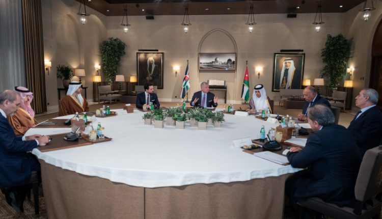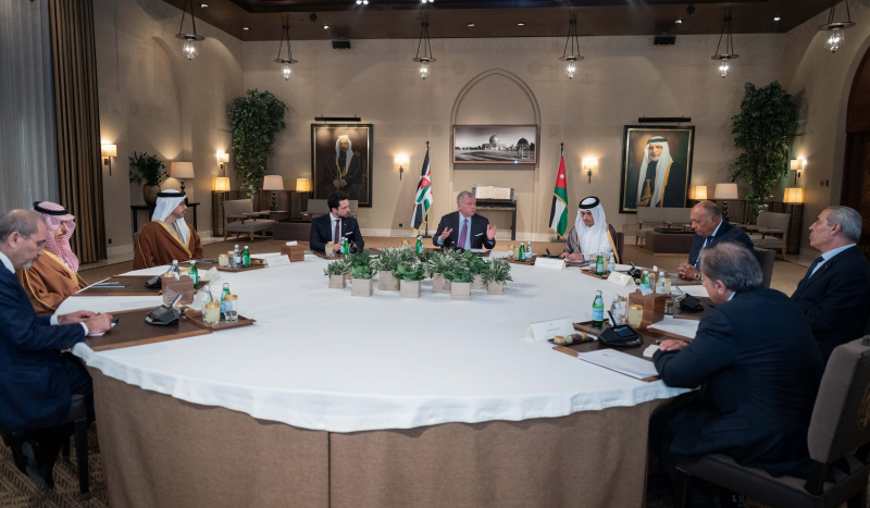 وضم اللقاء، الذي حضره سمو الأمير الحسين بن عبدالله الثاني ولي العهد، كلا من وزير الخارجية الإماراتي سمو الشيخ عبدالله بن زايد آل نهيان، ووزير الخارجية السعودي سمو الأمير فيصل بن فرحان بن عبدالله، ورئيس مجلس الوزراء وزير الخارجية القطري الشيخ محمد بن عبدالرحمن بن جاسم آل ثاني، ووزير الخارجية المصري سامح شكري، وأمين سر اللجنة التنفيذية لمنظمة التحرير الفلسطينية حسين الشيخ.