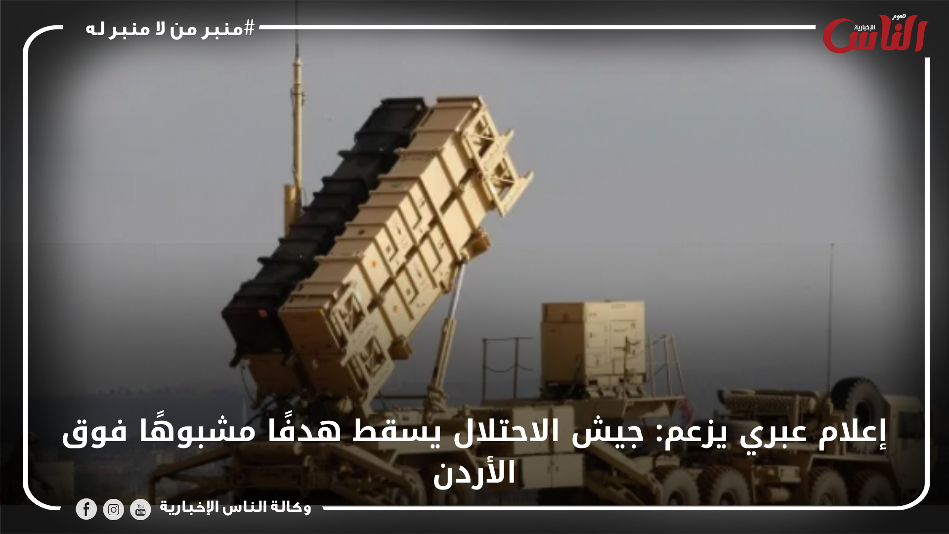 وكالة الناس – إعلام عبري يزعم: جيش الاحتلال يسقط هدفًا مشبوهًا فوق الأردن