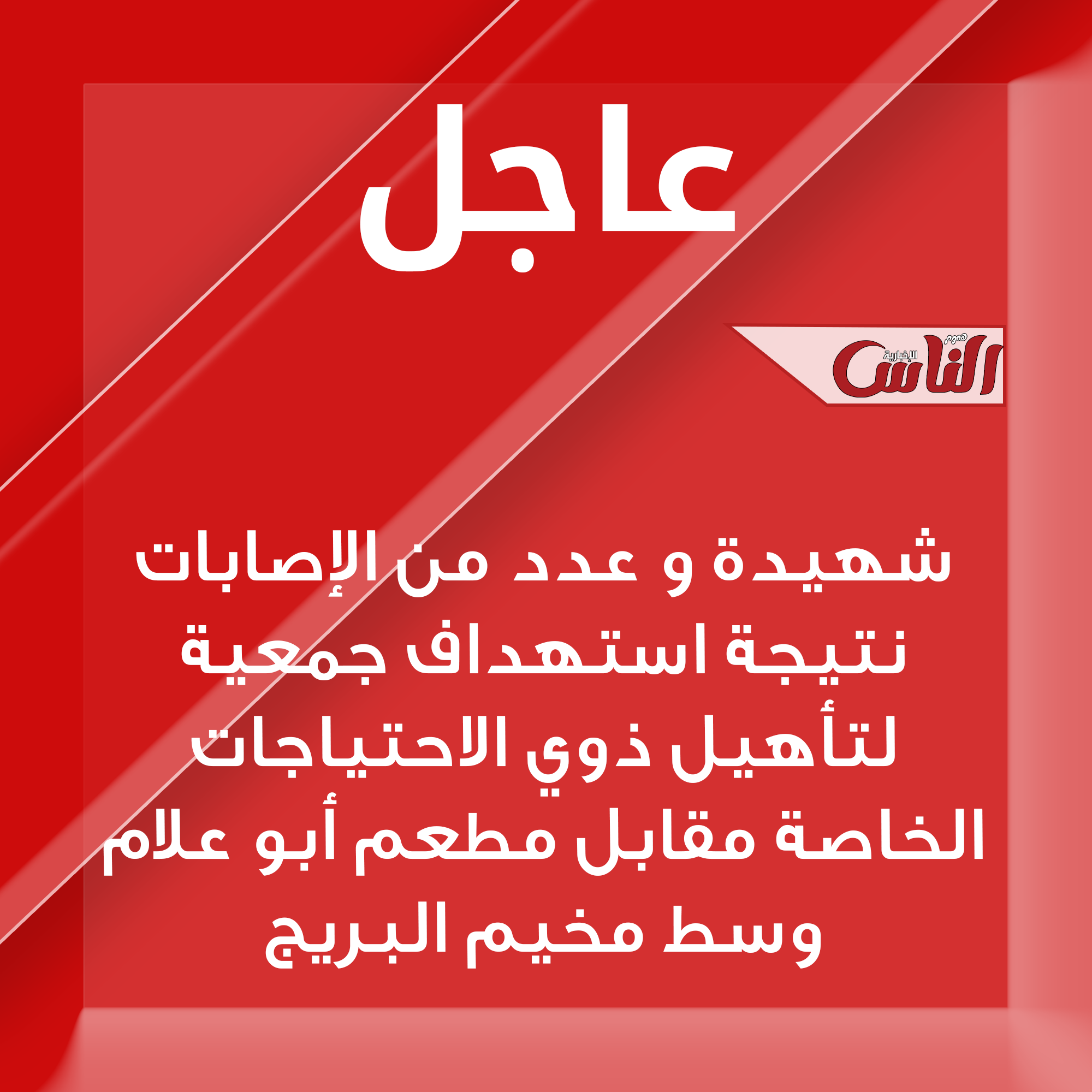 شهيدة و عدد من الإصابات نتيجة استهداف جمعية لتأهيل ذوي الاحتياجات الخاصة مقابل مطعم أبو علام وسط مخيم البريج
