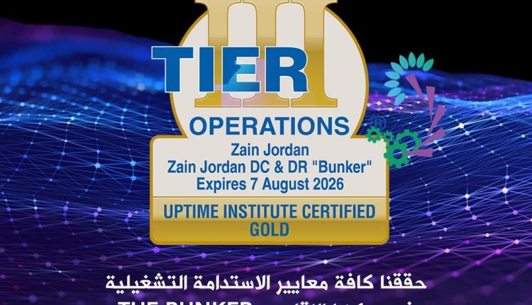 عمّان 25تشرين ثاني 2023: حصل مركز زين الإقليمي لتخزين البيانات والمعلومات والتعافي من الكوارث (THE BUNKER) على الشهادة الذهبية للاستدامة التشغيلية من المستوى الثالث Tier III Gold of” Operational Sustainability (TCOS)” من قِبل معهد Uptime الأمريكي المتخصص في تصنيف ودراسة وتقييم أداء مراكز البيانات العالمية ومرونتها واستدامتها وكفاءتها.