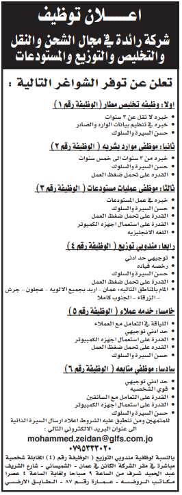 وظائف شاغرة في شركة بمجال الشحن والتخليص ( شاهد )