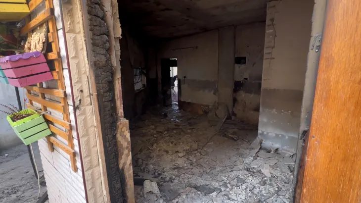 وفي مشهد يذكر بقصف البيوت السكنية في قطاع غزة، قصف الاحتلال الإسرائيلي منزل عائلة مرعي، فهدم بشكل كامل واشتعلت النيران في جزء منه.
