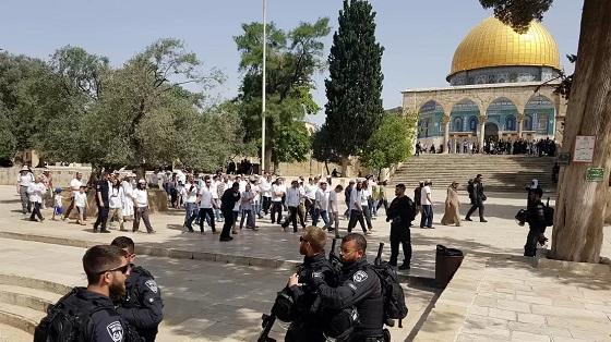 وبينما غُيّب المعتكفون والمرابطون وحراس المسجد، تمكّن المقتحمون من رفع الأعلام الإسرائيلية 3 مرات، وتمكّن وزير الأمن القومي إيتمار بن غفير من اقتحامه 3 مرات، وتمكّنوا من الصلاة وأداء الطقوس بأريحية، وتقديم القرابين النباتية، وإضاءة شموع عيد الأنوار.